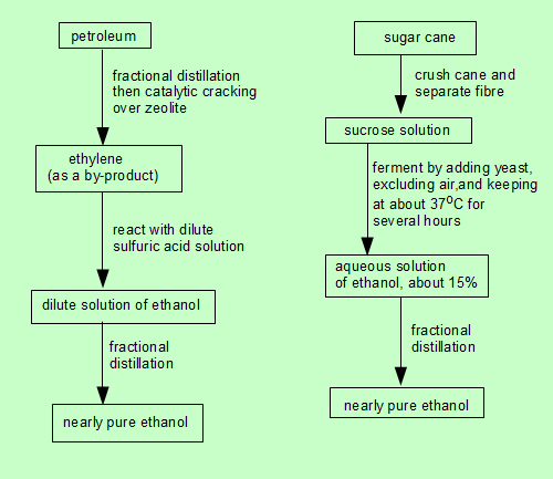 which are also non-renewable resources. Producing ethanol from sugar cane is to more environmentally sustainable in that the starting material is a renewable resource (new crops can be grown). However it is not completely sustainable in that large quantities of energy, usually from non-renewable fossil fuels, are needed to produce the fertiliser essential for crop growth, to cultivate, harvest and process the cane, to maintain the fermentation tank at the required temperature and to distil the ethanol from the 15% solution. |